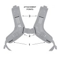 The pockets securely attach to each side of the harness with loops and locking clips and include an extra harness buckle for improved pack stability and weight distribution.