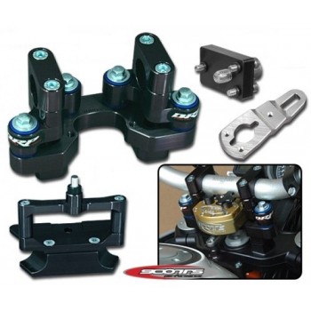 The BRP Rubber SUB "Scotts Under Bar" Mount is the latest in stabilizer mounting options and is a very popular setup for Adventure riding, Dual Sport and off road riders. The SUB Mount is designed to run 1 1/8" ProTaper style handlebar and mounts your Scotts stabilizer below the handlebar replacing the bar mount assembly on your OEM triple clamps. The SUB Mount setup offers several benefits over a conventional "above bar" stabilizer setup.