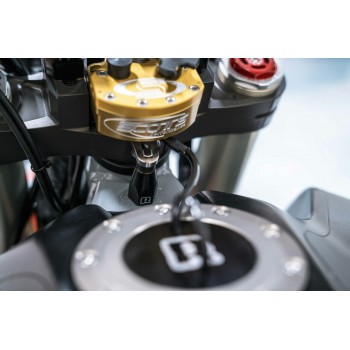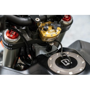 The Rottweiler Performance Scotts Damper Adapter kit is a simple and clean yet practical solution that offers everything you need to adapt a Scotts Damper to either your stock 790/890 Adventure triple clamp or the STANDARD height version of the Rottweiler Performance Triple Clamps.