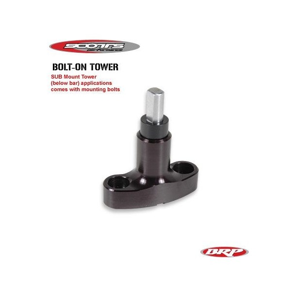 The Scotts Performance bolt on tower is an integral part of the stabilizer application, and is the critical connection between the stabilizer and the frame of the motorcycle. This tower is a SUB Mount style bolt-on tower designed for below bar stabilizer mounting(Scotts Under Bar). Bolt on towers are available for most late model bikes.
