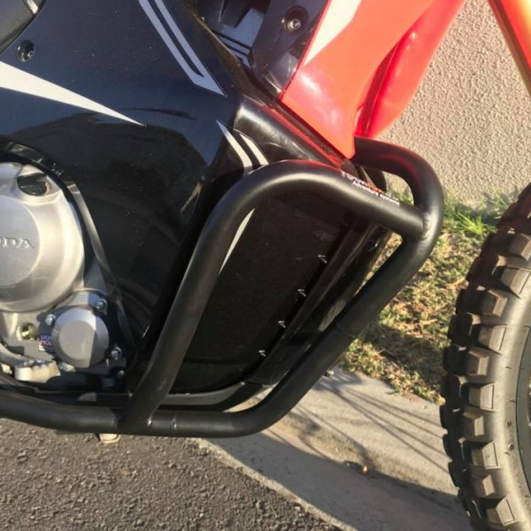 Covers the vulnerable lower fairings of the motorcycle Made from 25.4mmx2mm Steel tubing TIG Welded for increased strength Sandblasted before powder coating Matt Black Powder Coating