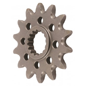Supersprox Counter Shaft Sprockets are made from SCM-435 Carbon Free Case Hardened Steel for high wear resistance. Supersprox guarantees zero breaking risk extended sprocket life. Ultra hard surface layer (0.5mm) that reduces friction to prevent power loss caused by chain drag. Fully lightened with radial holes for off-road, street and adventure bikes. Grooved teeth for off-road applications (just like the Supersprox Factory Racing Parts) that allow for fast removal.