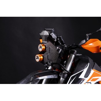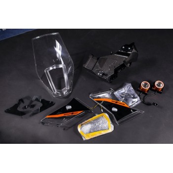 The core of the KTM 790 fairing kit is a carbon fiber tower. It consists of combinations 3-9 layers for carbon and kevlar, providing the tower with high stiffness and also reducing the weight of the kit. The carbon tower is 430g only! And in total, you save almost 1Kg compared with the OEM setup.