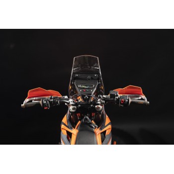 The fairing is designed to match the size and shape of the KTM 690 Enduro/SMC 2019+ and keeping it very narrow. The complete set of parts was designed especially and only for the KTM 690 Enduro/SMC to keep great original handling of the bike. Includes an aerodynamic windshield naturally extending the upper contour of the cockpit.
