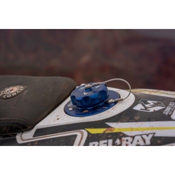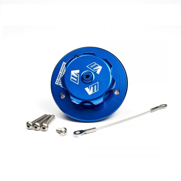 Tired of removing your ignition key to access the fuel tank just to watch the gathered dust/debris deposit itself into your fuel injection system? Your solution is right here with this CNC part machined from billet aircraft grade aluminum with an anodized BLACK or BLUE finish. The kit includes all necessary mounting hardware as well as a Machined Billet Cap in matching color. This unit retains the stock venting location. The stock OEM base O-ring will be reused when installing this unit.