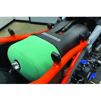 As usual, they didn't stop there with the improvements. The stock air box once again fails the white glove tests in spectacular fashion and is prone to multiple sealing issues leading to worn valves, valve seats, cylinder walls and eventually possible engine failure. World renown for their for quality craftsmanship and class leading filtration capabilities, we contracted none other than Twin Air Filters to construct the foam element for our new intake system, leveraging their stellar reputation as OEM standard on all of KTM's enduro series motorcycles. This means you are getting the best of both worlds: Rottweiler design mated with Twin Air's quality. An unbeatable package.