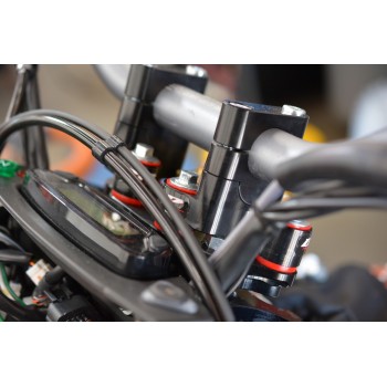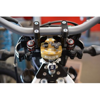 Designed to mount a Scotts stabilizer below the handlebar using your OEM cast or billet triple clamp. The BRP Rubber Mounted SUB adapter mounts to the existing rear bar mount holes and allows you to run in position 3 which is the most common and popular position. SUB Mounting a stabilizer offers several benefits over a conventional "above bar" setup and is becoming a very popular setup for GP's, motocross, off road, dual sport applications and riders of taller stature.