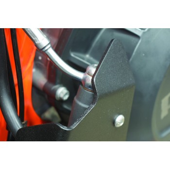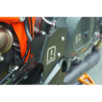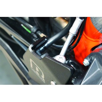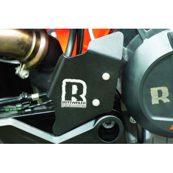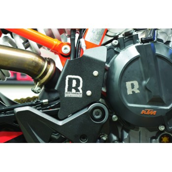 Introducing Rottweiler Performance's KTM 790/890 Adventure Rear Master Cylinder Guard. This guard provides complete protection of your Rear Master Cylinder, brake line banjo bolt connection and delicate reservoir line connection. We discovered a problematic area on the master cylinder that needed immediate addressing, the plastic reservoir connector. This junction is exposed to damage by the rider's boot when moving around on the footpeg. One simple step and your use of the rear brake is over. Not with our guard. We designed a 90 degree bend that wraps around this area and included a piece of foam strategically positioned to protect that area from possible damage. We didn't stop there, we then designed the top of the guard to be angled in order to protect the brake line banjo junction. We angled it this way to allow the rider's boot to slide past this area when hunting for the footpeg. We've tested this guard in the grueling world of professional racing and we can honestly tell you it works. Every 790 Adventure owner will want this guard. Don't get caught out in the badlands of Baja with a broken master cylinder.