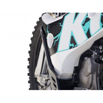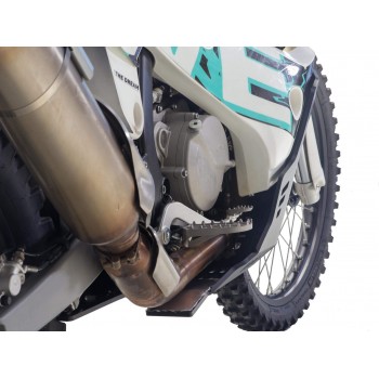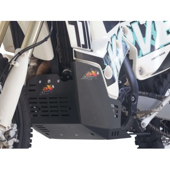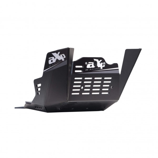 - The AXP Racing skid plate also covers the engine block, the exhaust system and the linkage, thanks to a removable plate that can be added (or not) to the rear of the plate.