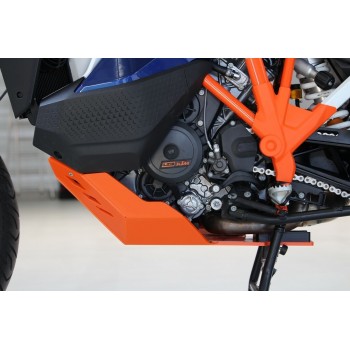 KTM 1290 SUPER ADVENTURE R / S ORANGE SKID PLATE - 2.9Kg - Made of High Density PolyEthylen (HDPE) plastic 8mm thick, this bashplate protects the engine block and the important parts of the bike.